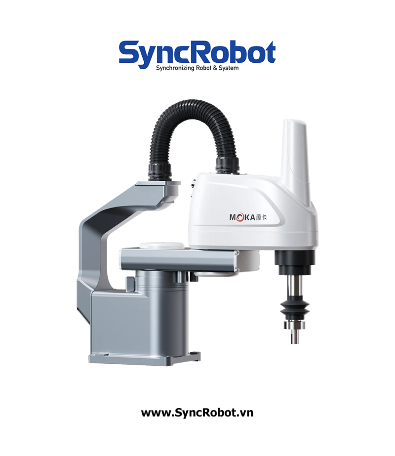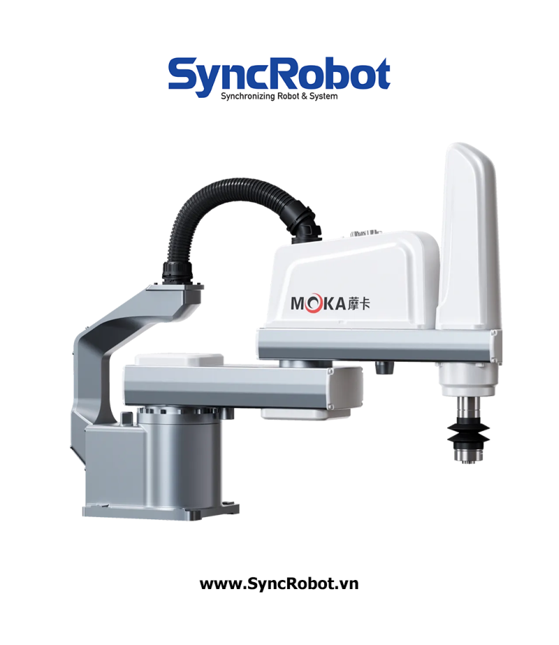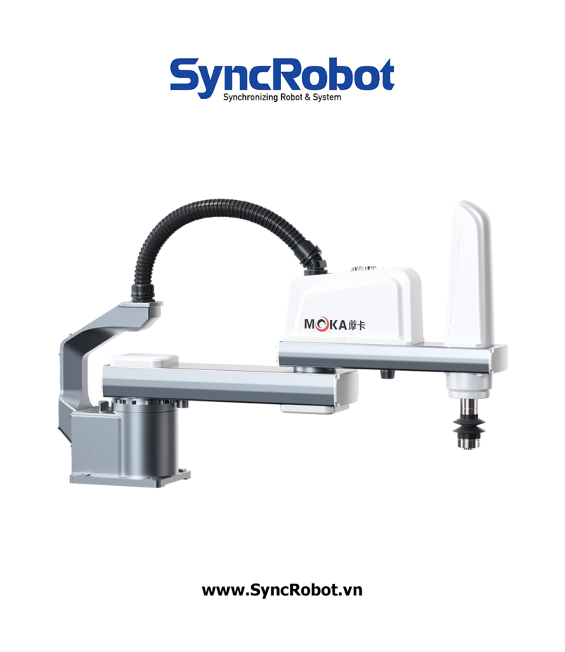 Robot SCARA MOKA là dòng robot chuyên dụng cho các ứng dụng yêu cầu tốc độ cao và chuyển động linh hoạt. Với thiết kế nhỏ gọn và kết cấu vững chắc, đây là lựa chọn hàng đầu để tối ưu dây chuyền lắp ráp và xử lý vật liệu hiện đại.