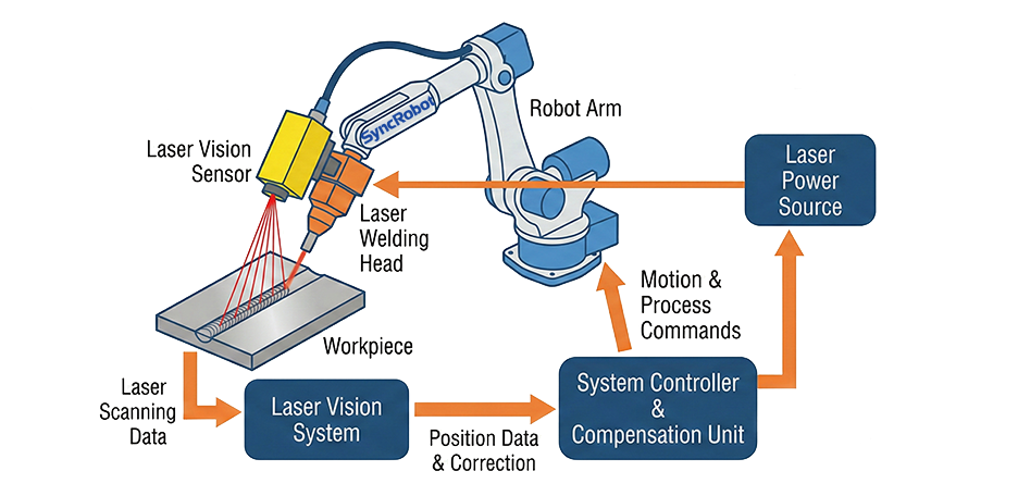 Hệ thống cảm biến Laser Vision: Đóng vai trò như một đôi mắt sắc bén, nhận diện vị trí đường hàn trong thời gian thực.